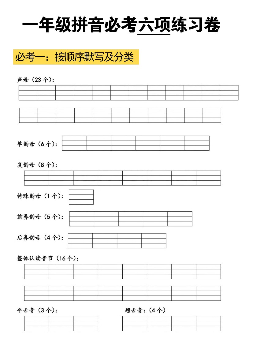 一年级(上)语文 拼音必考六项练习卷