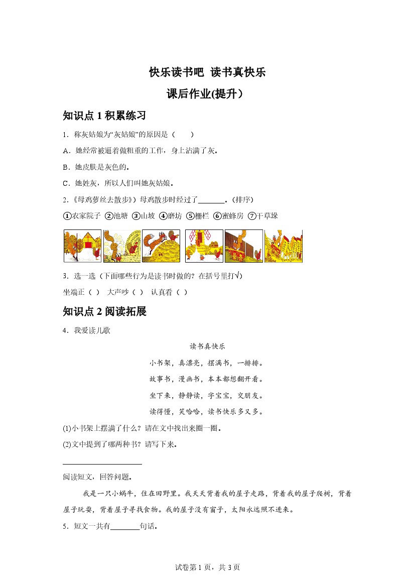 25新一年级上册语文快乐读书吧 读书真快乐课后作业(提升)