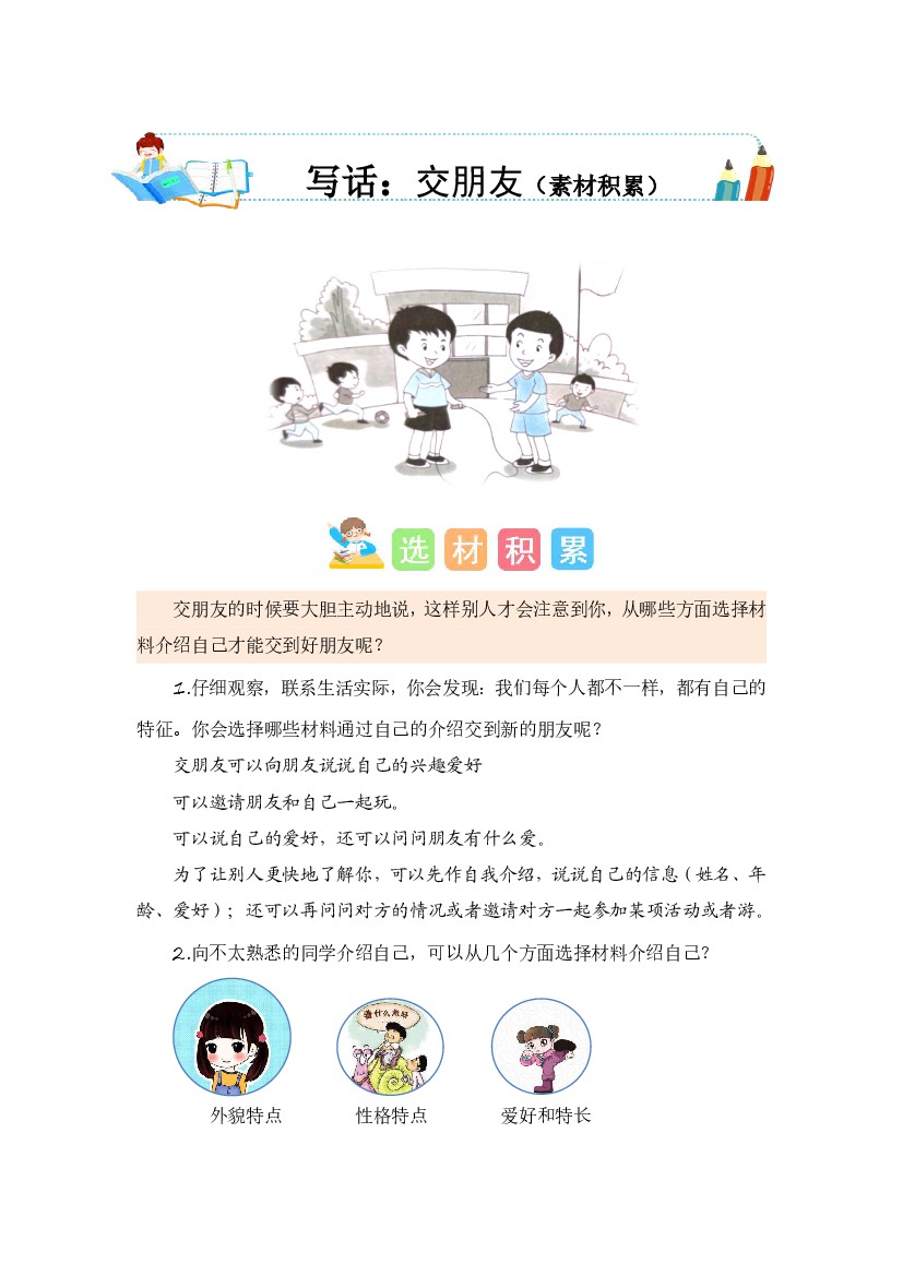 一年级(上)语文 第五单元写话:交朋友(素材积累)《统编版》