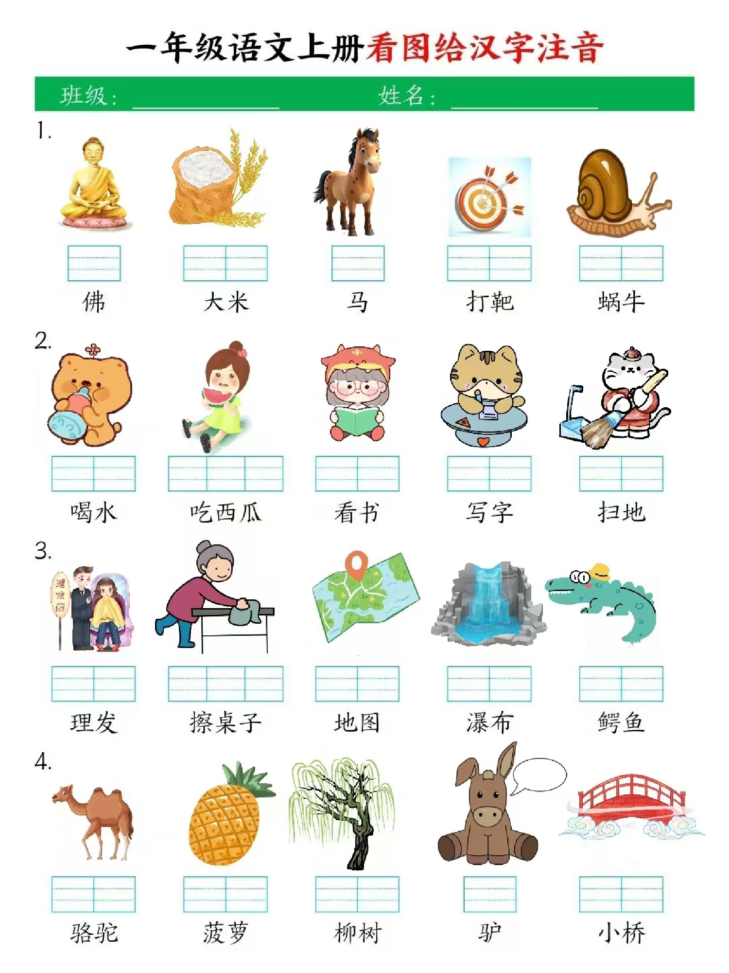 一上语文看图写拼音彩色版4页