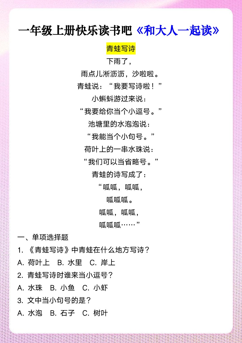 一年级(上)语文 快乐读书吧《和大人一起读》青蛙写诗