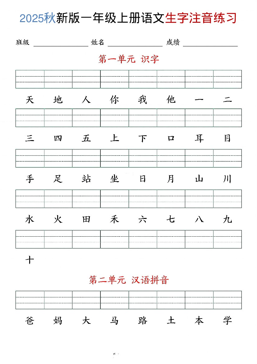 【2025秋新版】小学一年级上册语文拼音试题汇总