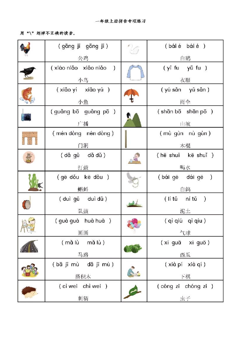 一年级语文拼音专项-前鼻音后鼻音 平舌音翘舌音练习题