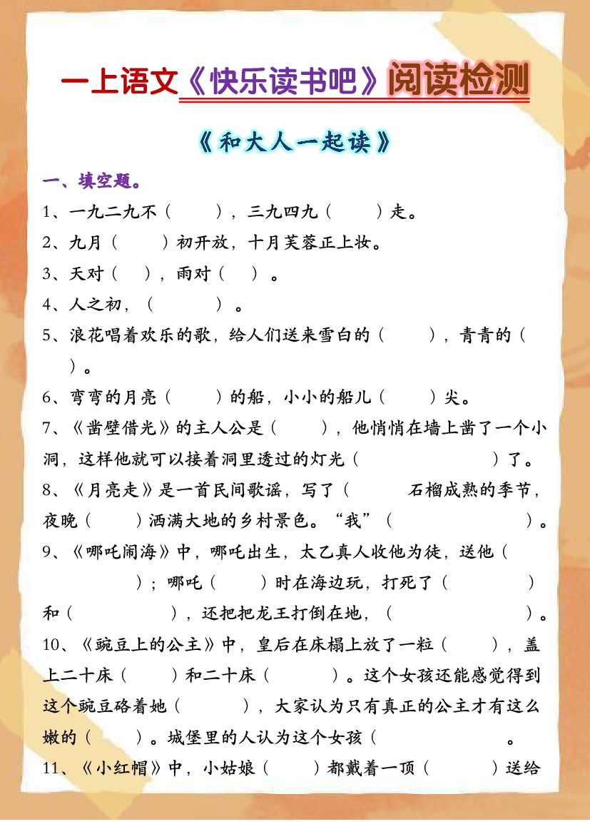 一年级上册语文第八单元 (单元测试)-(统编版)