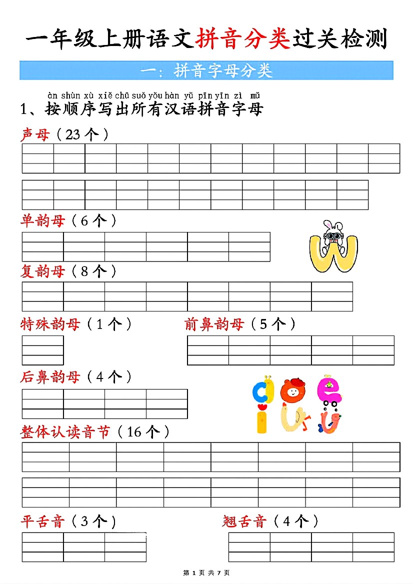 25新【一上语文】拼音专题-专题05 整体认读音节(16个)(知识+训练)
