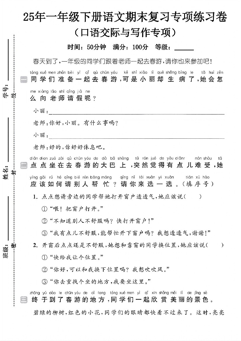 一年级(下)语文期末《口语交际与写作》专项练习卷 (1)