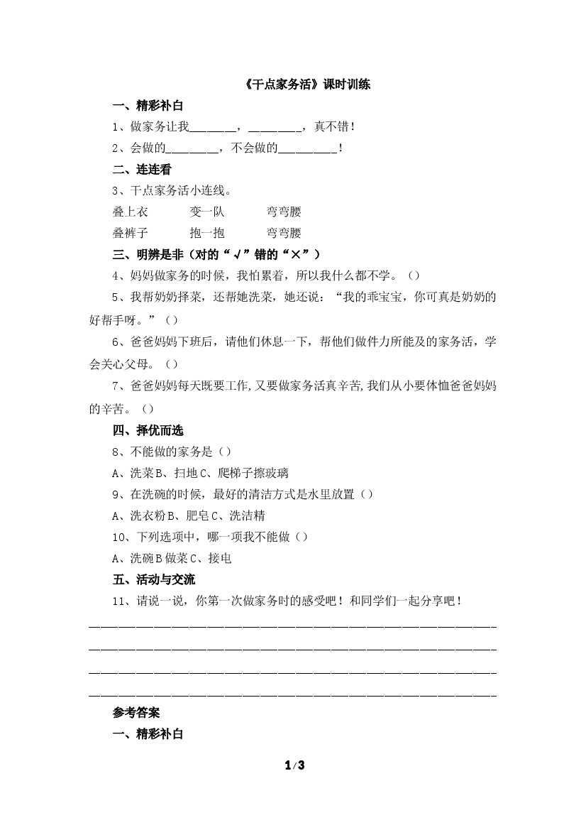 12《干点家务活》课时训练