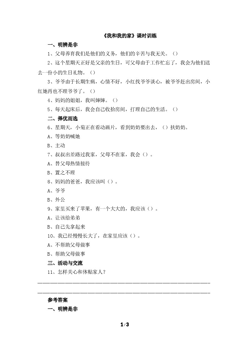 9《我和我的家》课时训练