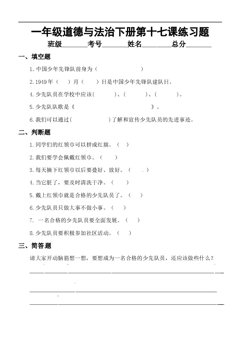 17、我们都是少先队员部编版(无答案)