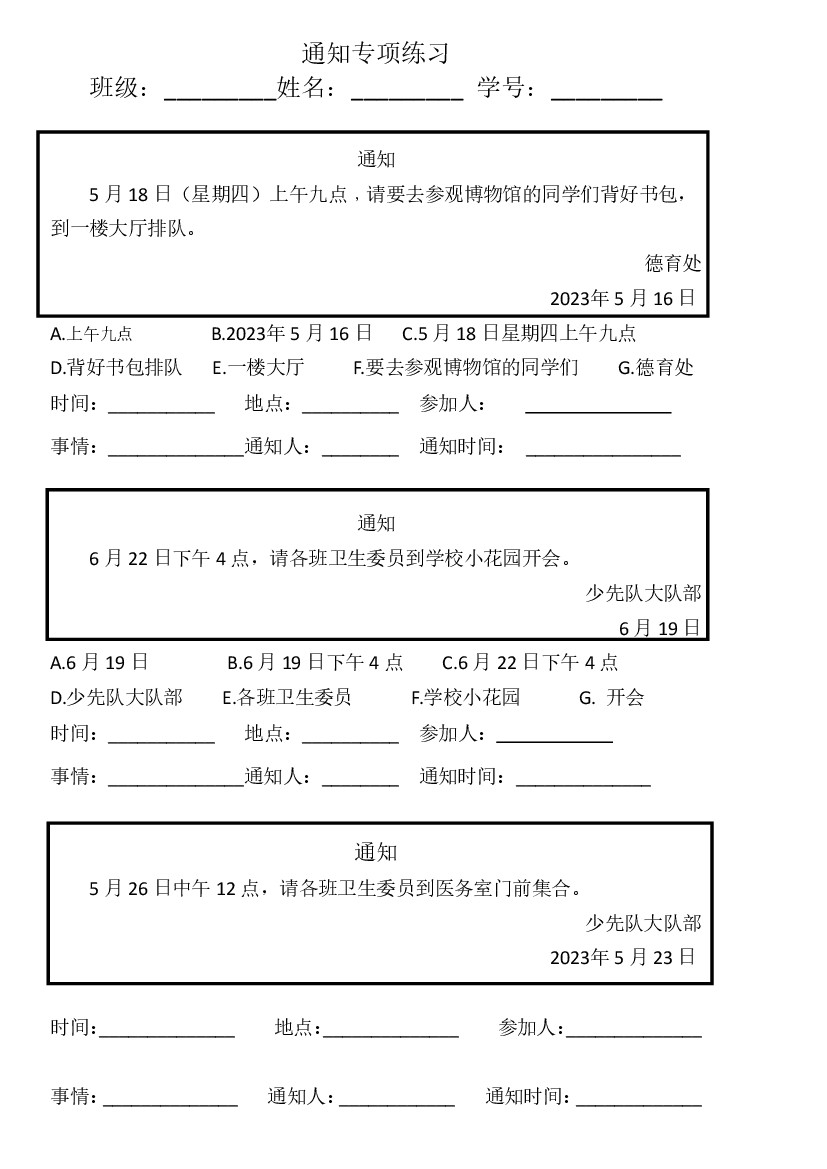一年级(下)语文通知专项练习