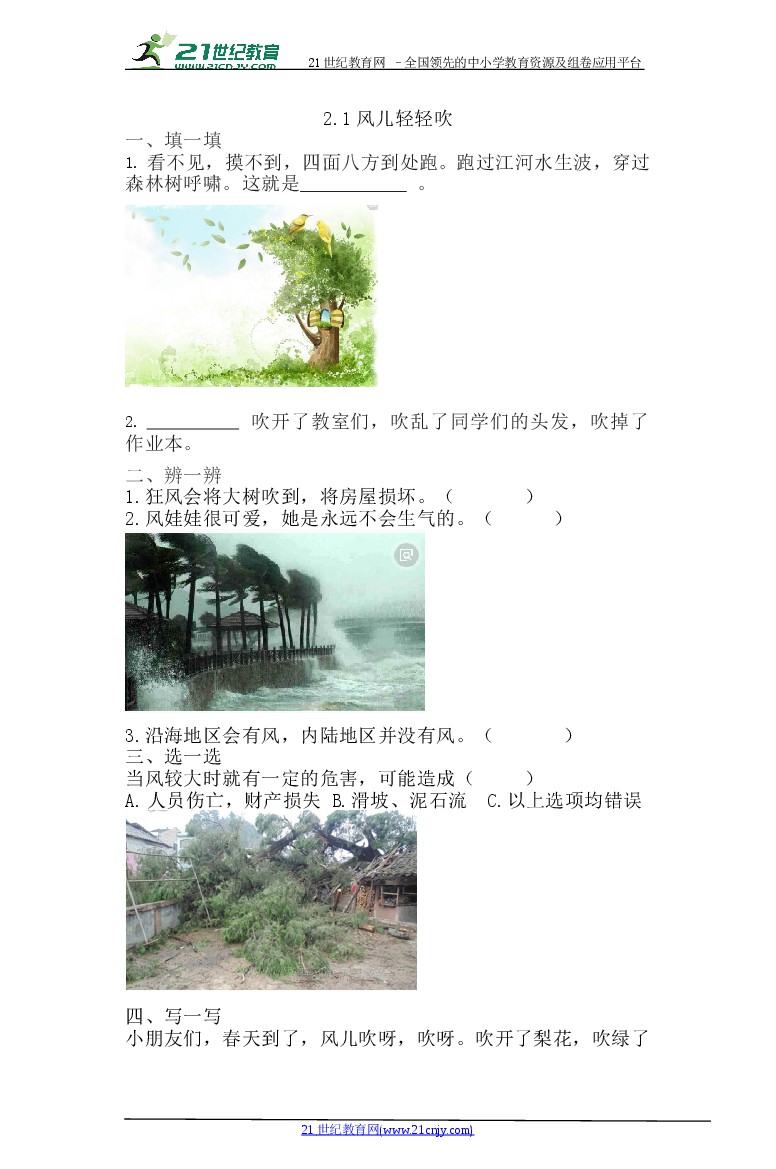 5、风儿轻轻吹同步练习(含答案)