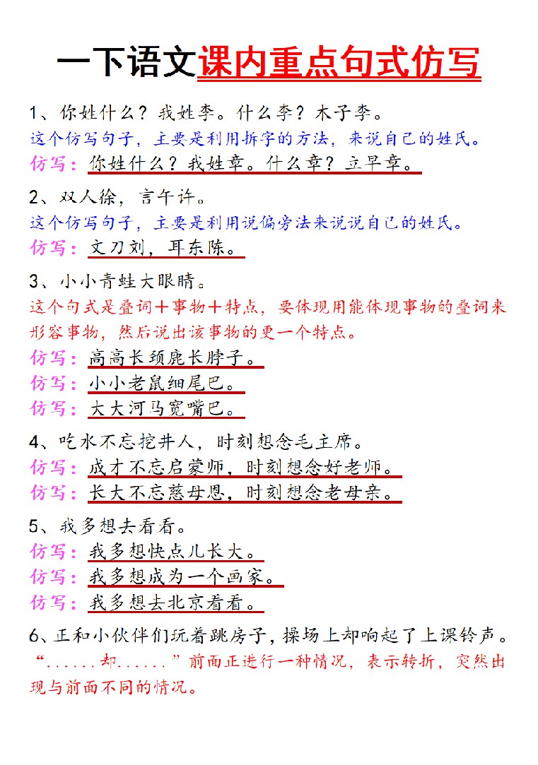 【仿写】一下语文课内重点句式仿写