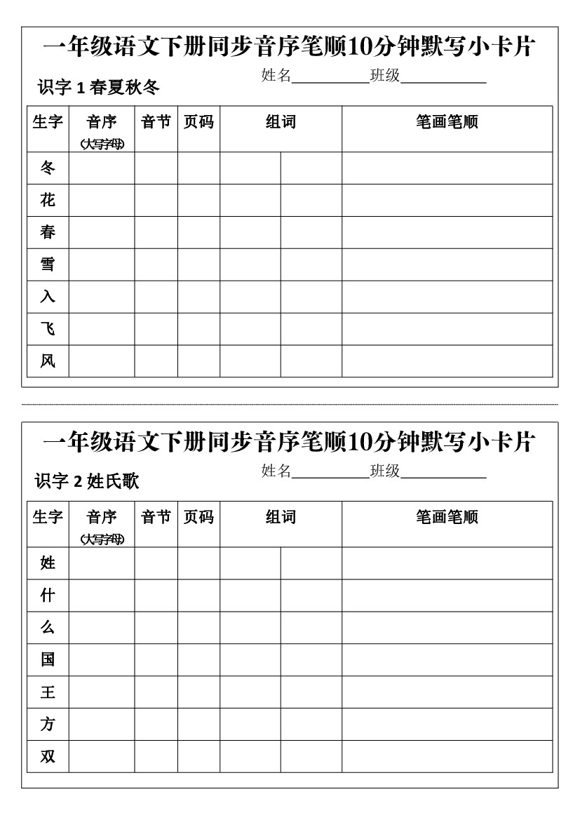 【音序】一下语文同步音序笔顺10分钟默写小卡片(查字法30卡片15页)