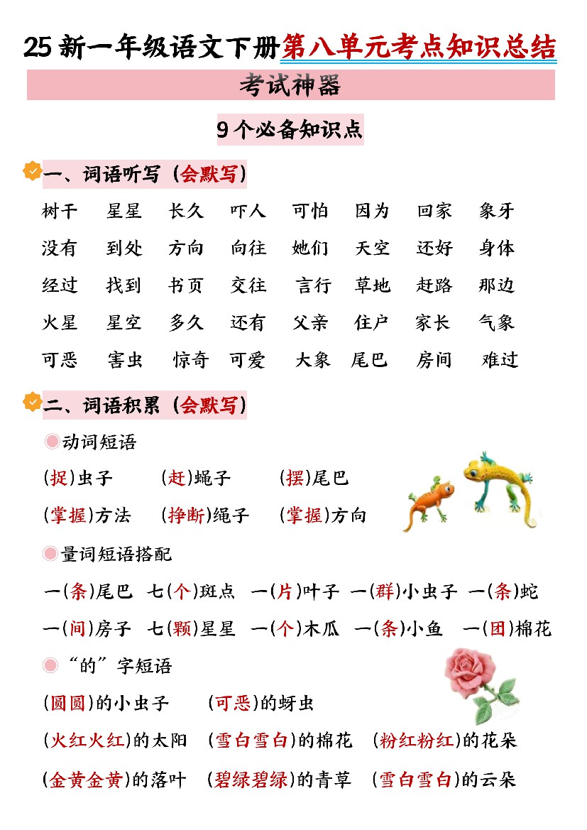 统编版2024-2025学年一年级语文下册期末综合复习卷