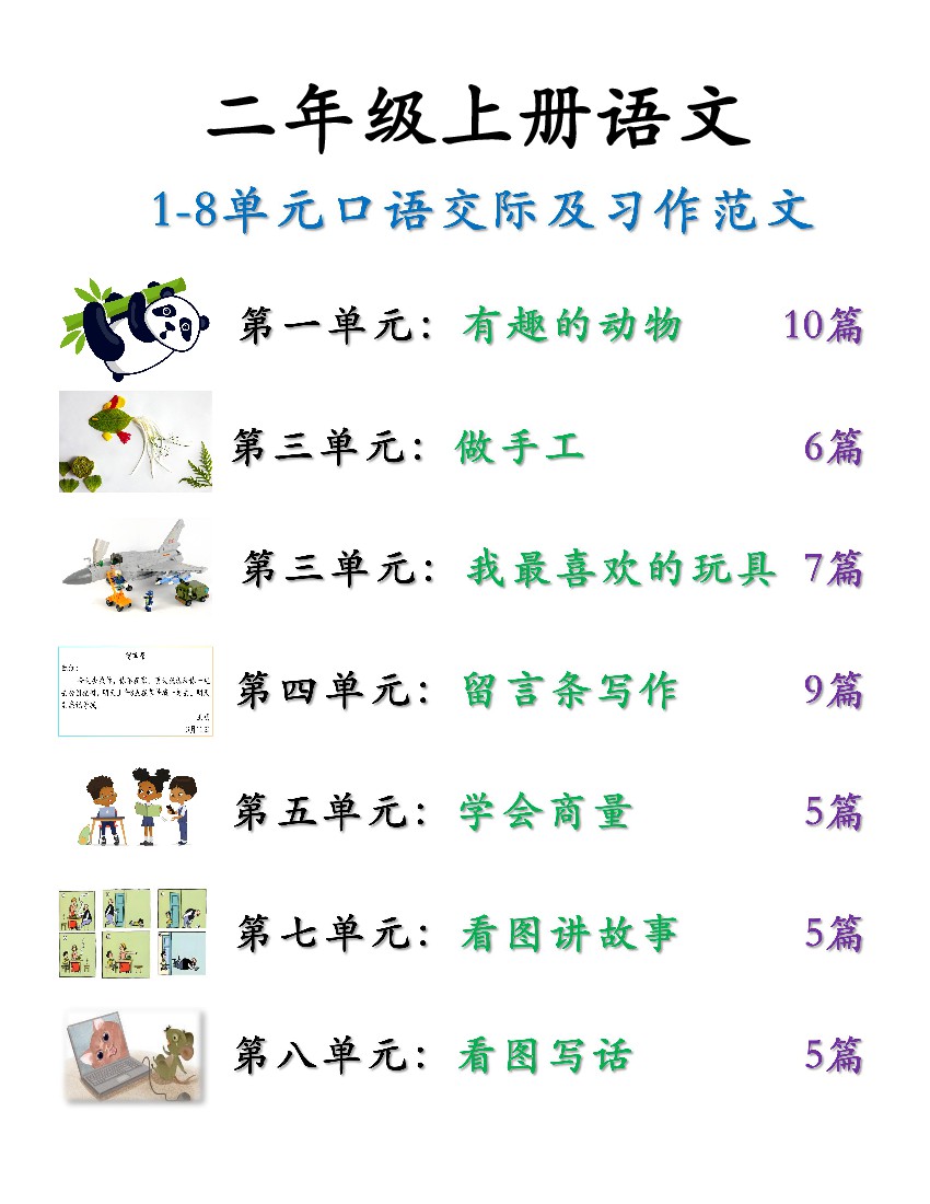 二上语文1-8单元口语交际及习作范文--.