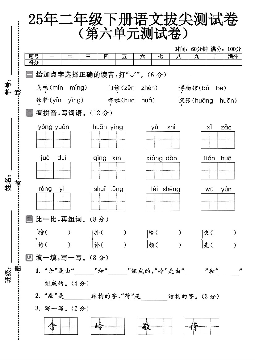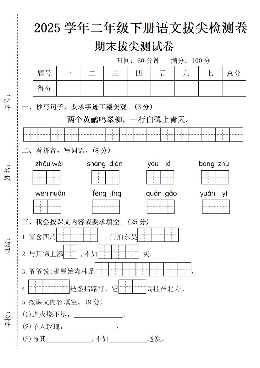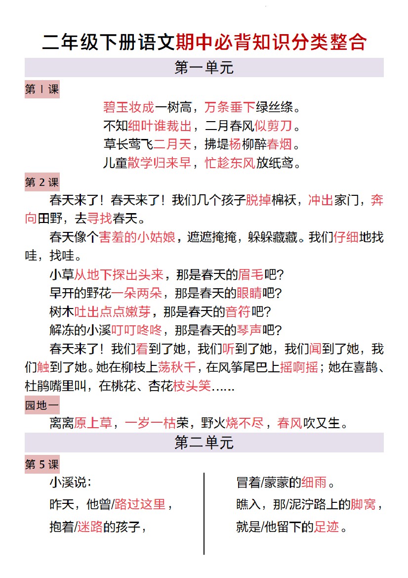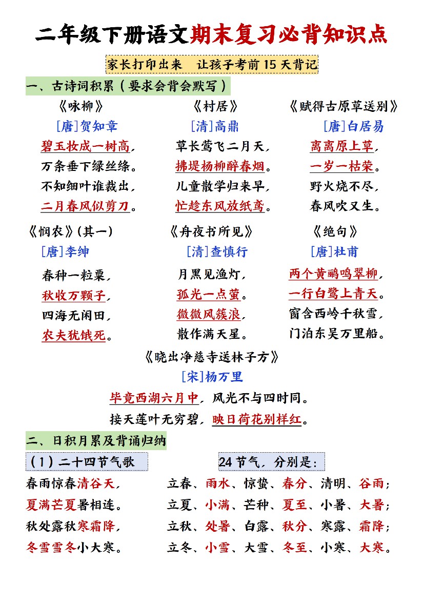 二年级语文下册语文必背知识点汇总-(咏柳)-m