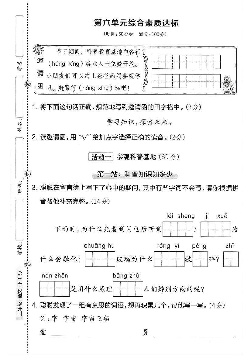 二年级下册科学单元测试卷-第二单元一起种蔬菜粤教版(含答案)