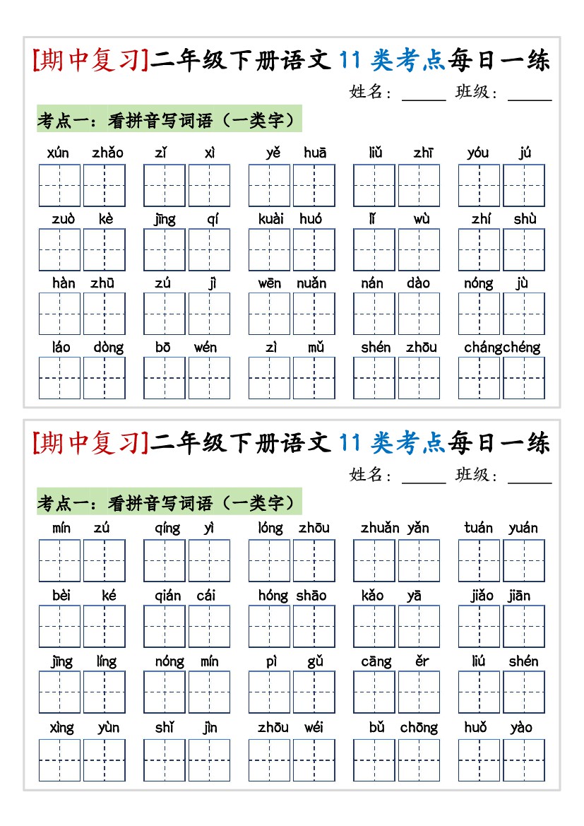 二年级(下)语文期末复习早读晚默每日一练小卡片