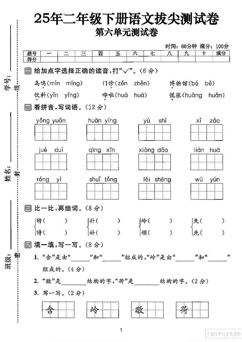 25学年二年级下册语文第六单元拔尖测试卷_1