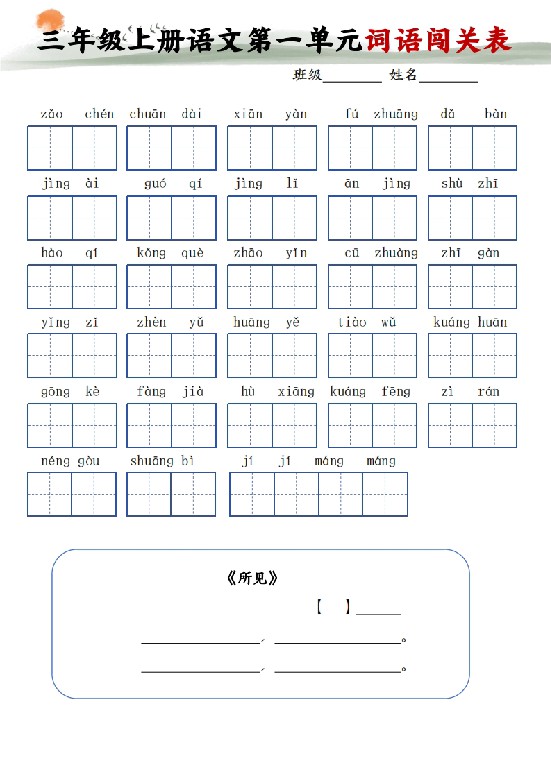 25年秋【三上语文】第1课 大青树下的小学(第二课时)课后作业(基础)
