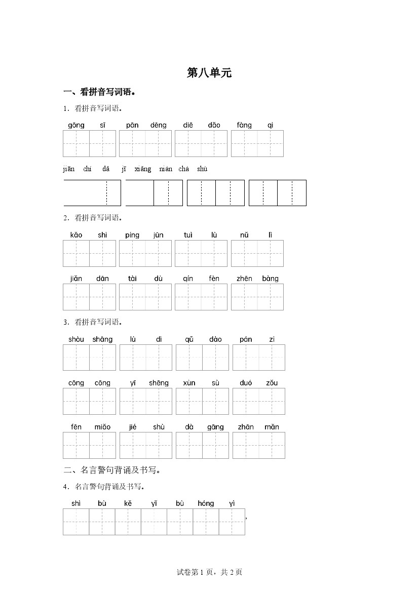 25年秋【三上语文】专项训练:第八单元 课文生字复习和名言警句