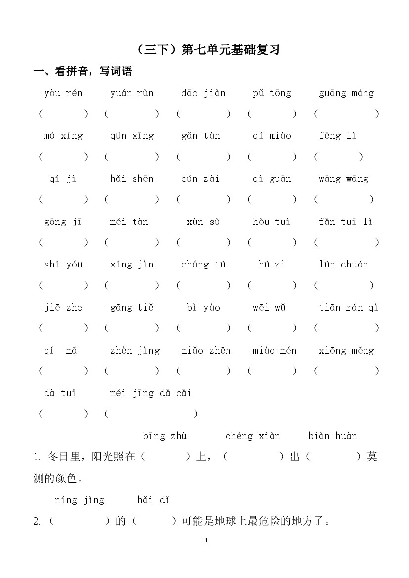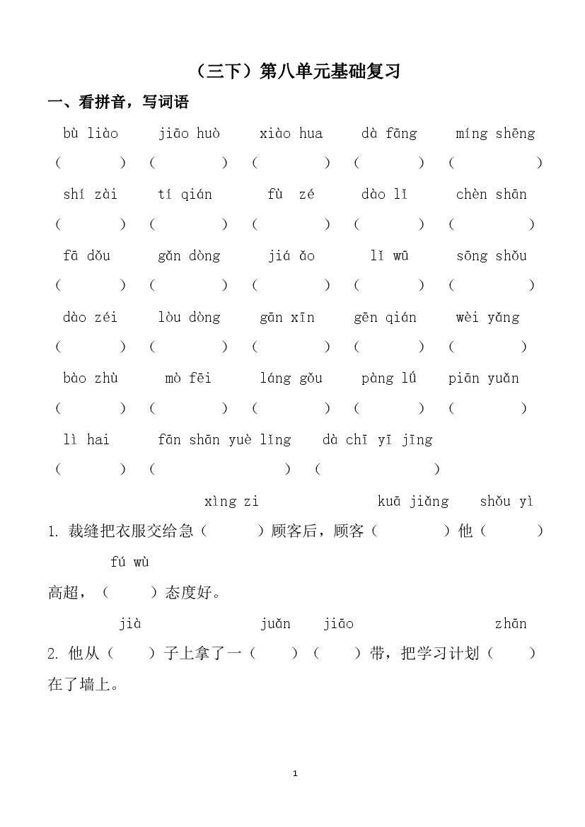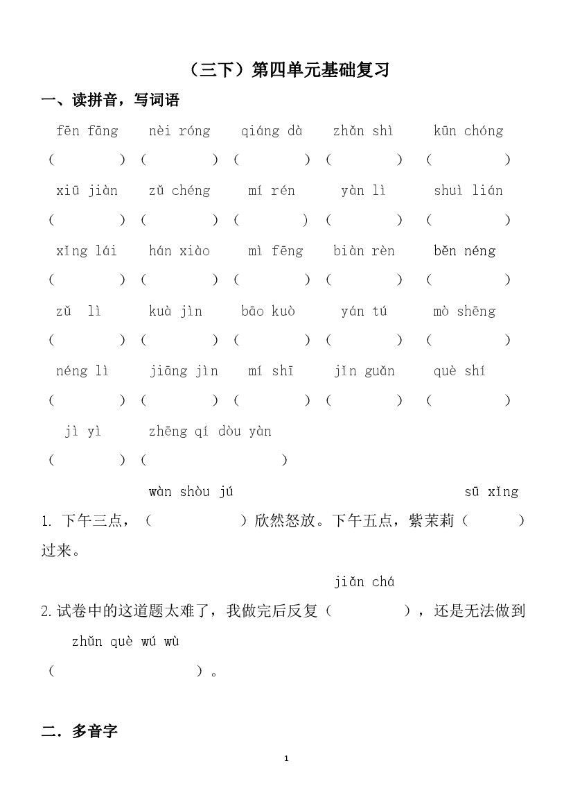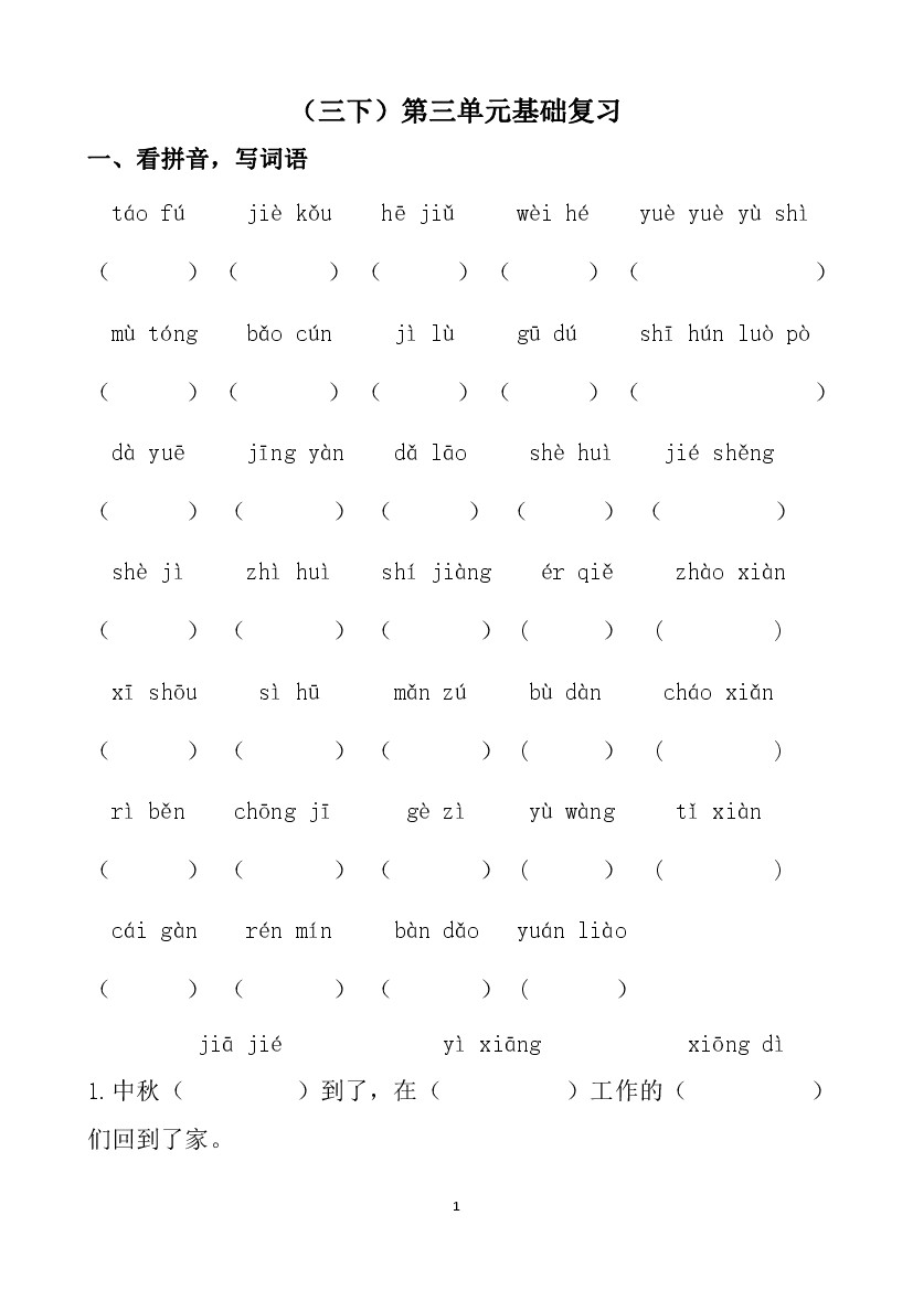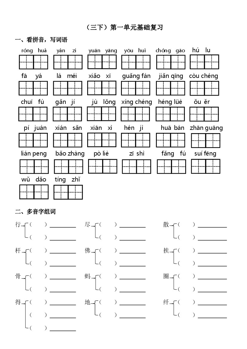 【试卷】【语文】三(下)语文自编第1单元基础复习卷(附答案)