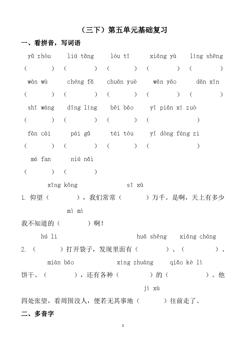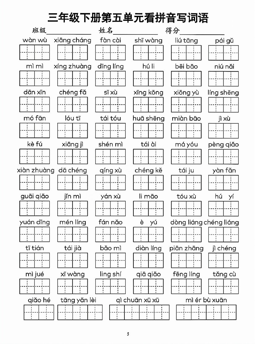 【试卷】【语文】三(下)语文自编第5单元基础复习卷(附答案)