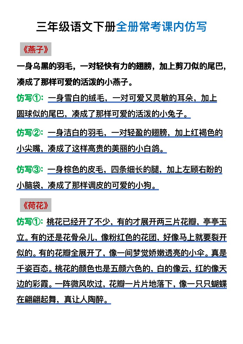 三年级(下)语文全册1-8单元必考知识点汇总(8页)