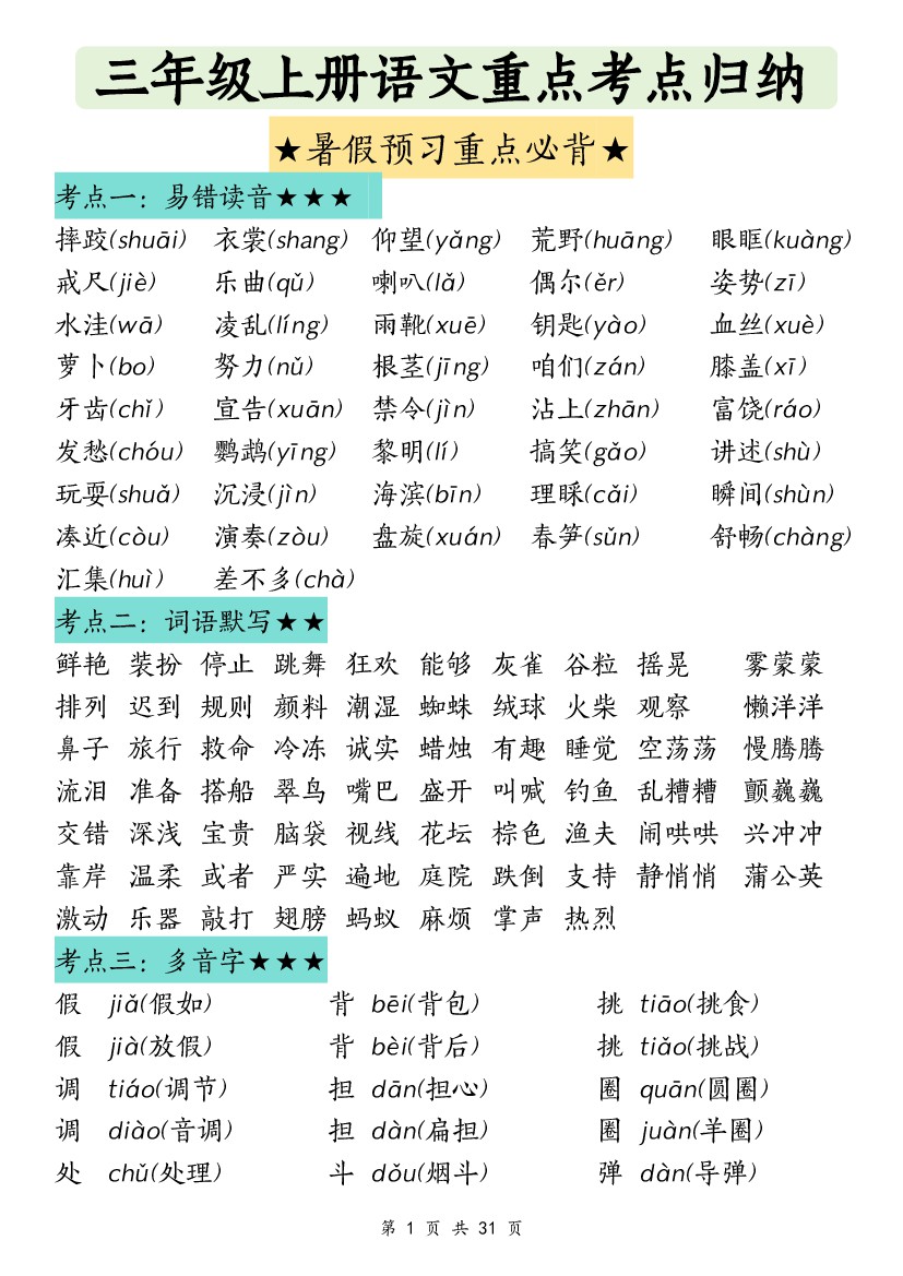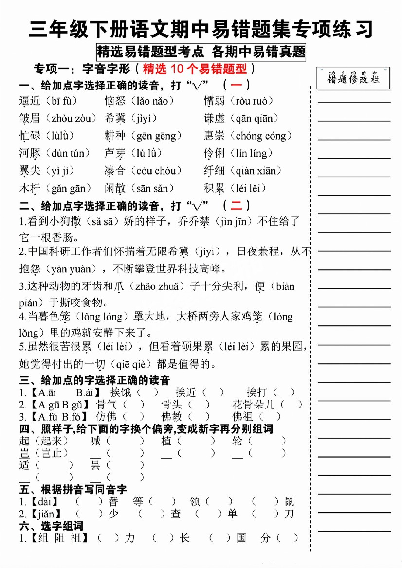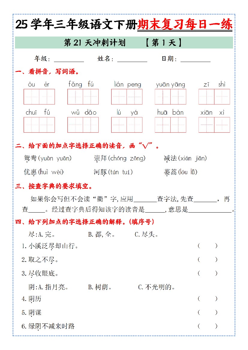 25学年三年级语文下册期末复习每日一练21天冲刺(偶尔)-m