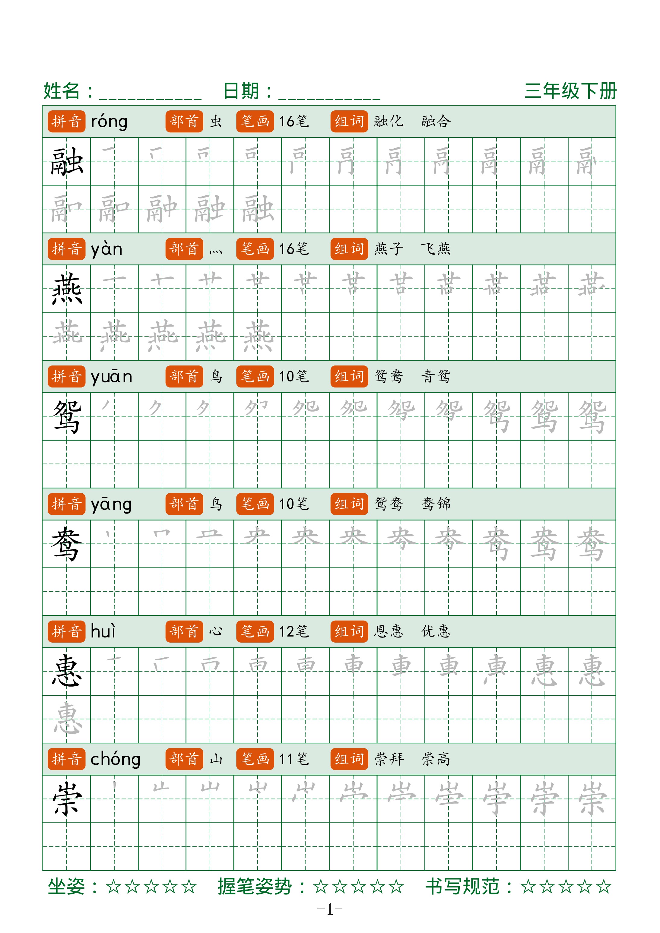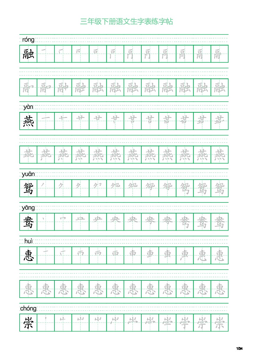 三年级下册写字表练字贴(拼音笔画笔顺组词)63页