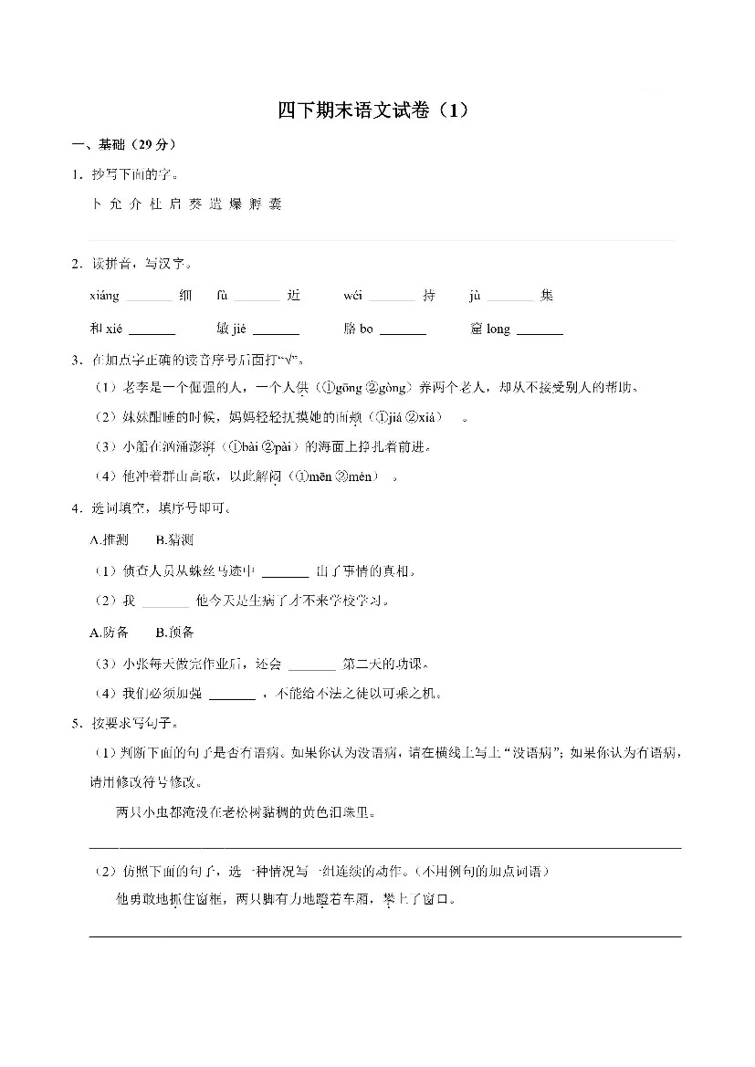 四下期末语文试卷(1)