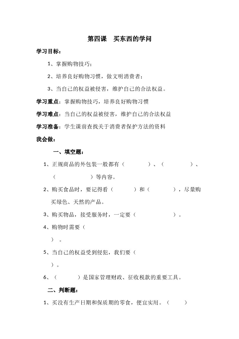 人教部编版四年级下册《道德与法治》第4课买东西的学问课课练(含答案)