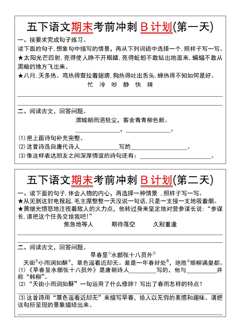 【期末复习系列】五下语文期末考前冲刺B计划(1-10)