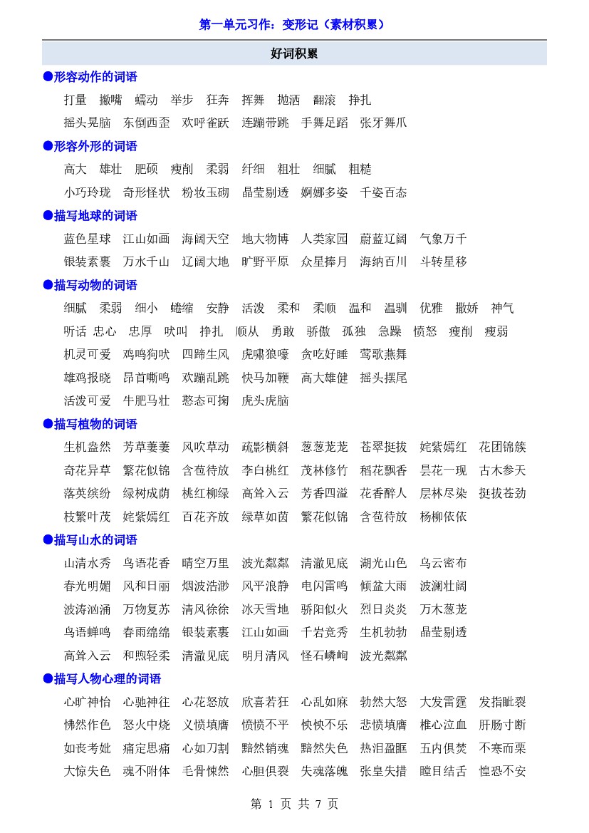 25年秋【六上语文】第1单元习作《变形记》(素材积累)