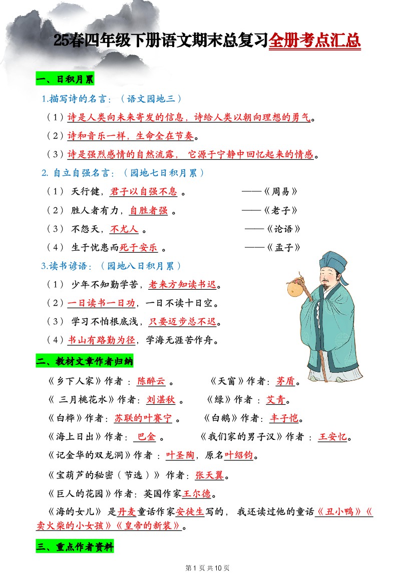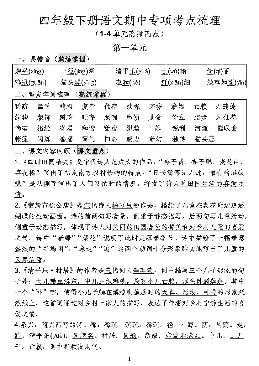 四年级下册语文《期末复习·1~8单元高频考点专项梳理》