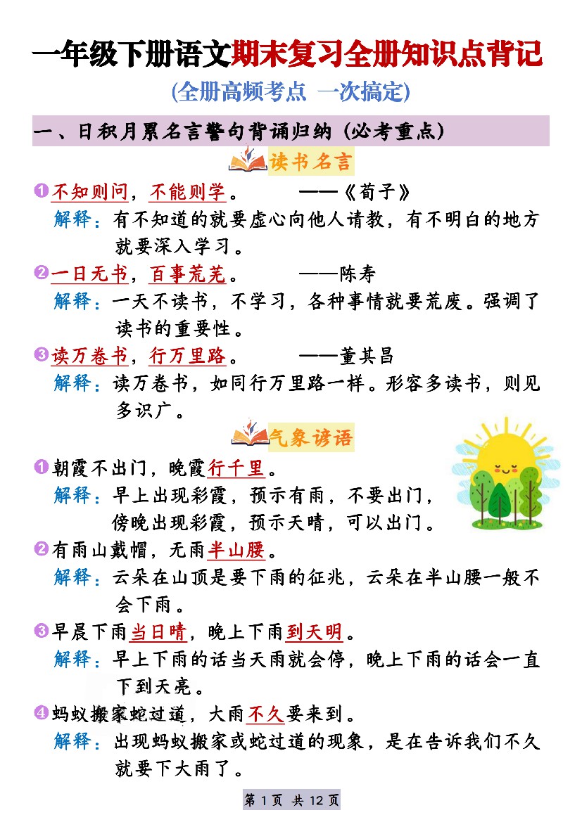 一年级(下)语文1-8单元字词练习(含答案16页)