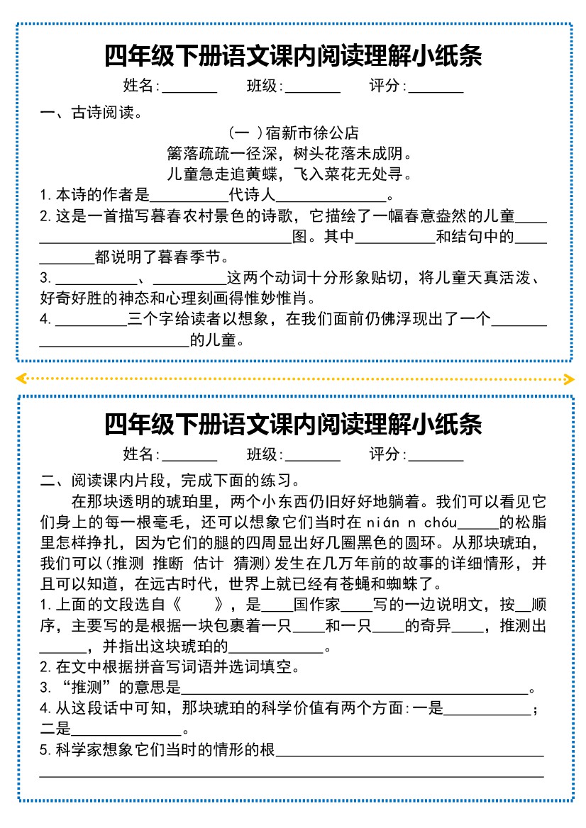 【1-4单元阅读方法及阅读题目(空白练习版)】四下语文