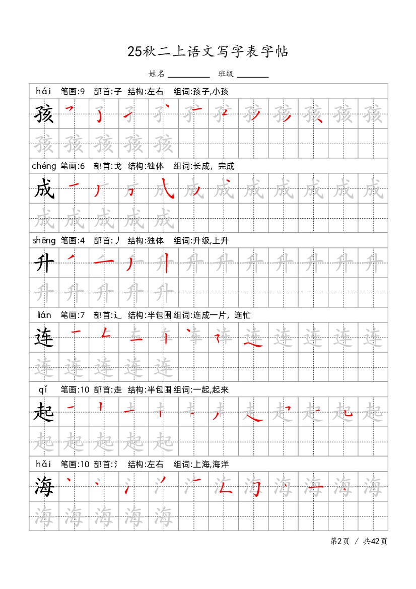 首页 > 全部 > 生字字帖 > 25秋新二年级上册语文二上语文写字表字帖(不带笔顺)