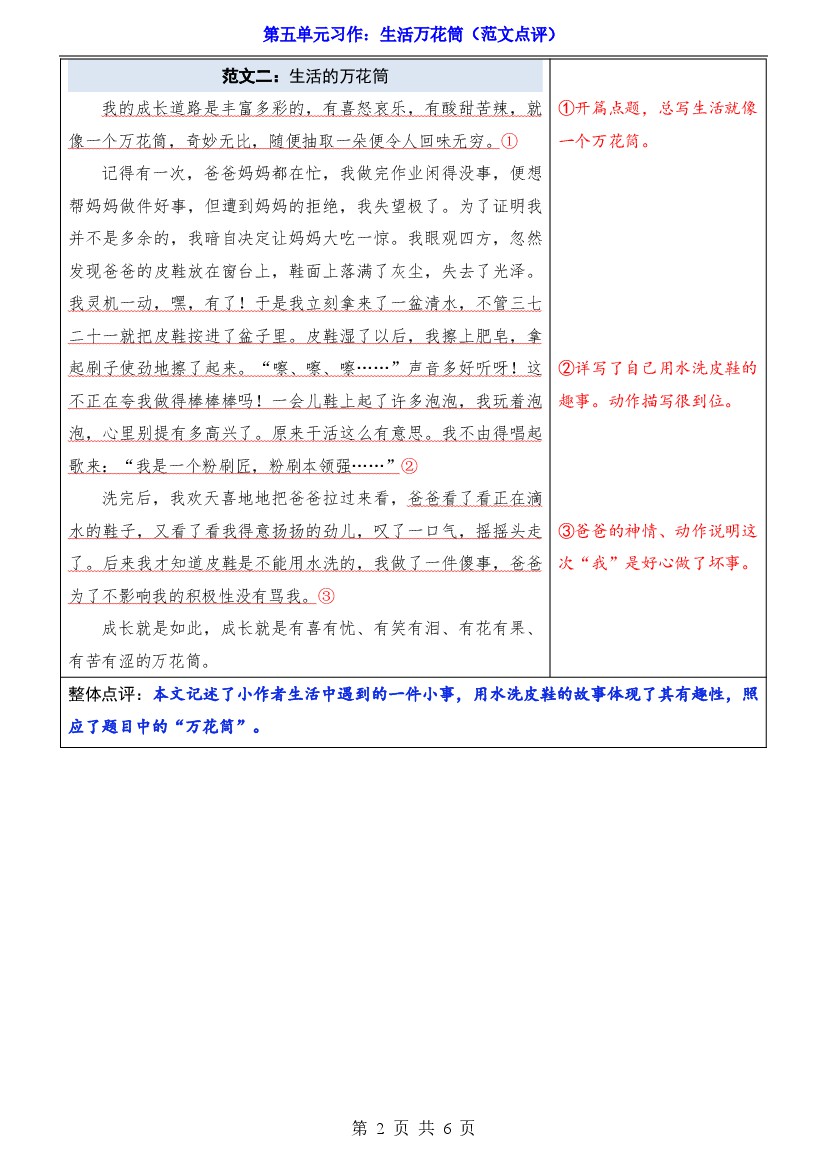 25年秋【四上语文】第5单元习作《生活万花筒》(范文点评)