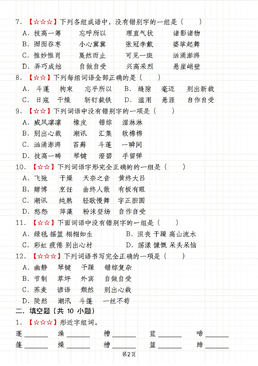 首页 > 全部 > 专项练习 > 六上语文期末真题分类复习专题字形