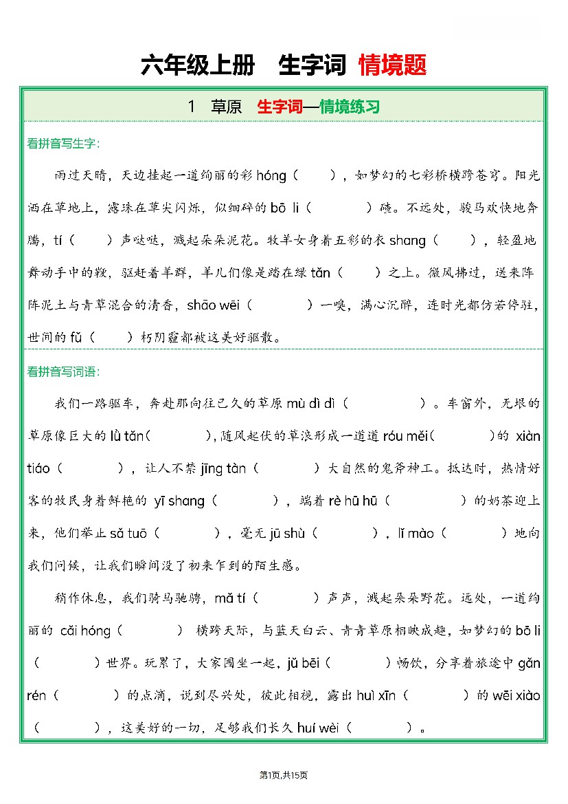 首页 > 全部 > 专项练习 > 六上生字词情境题(空白)