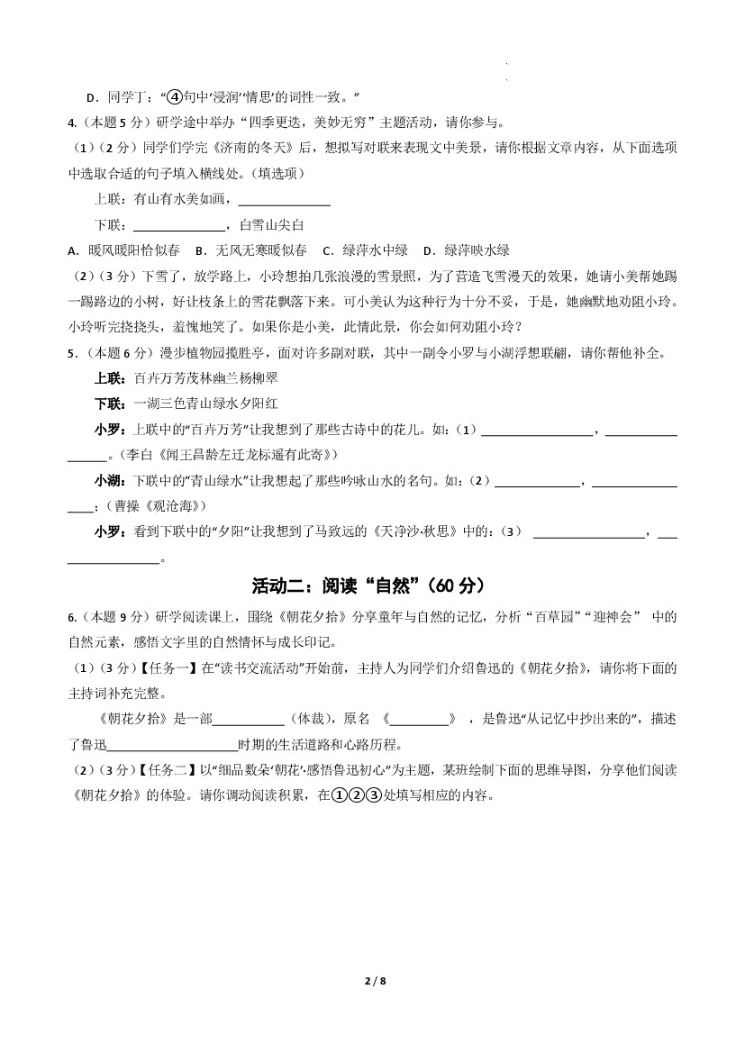 首页 > 全部 > 月考试卷 > 七年级语文第一次月考卷·基础过关卷(考试版A4)