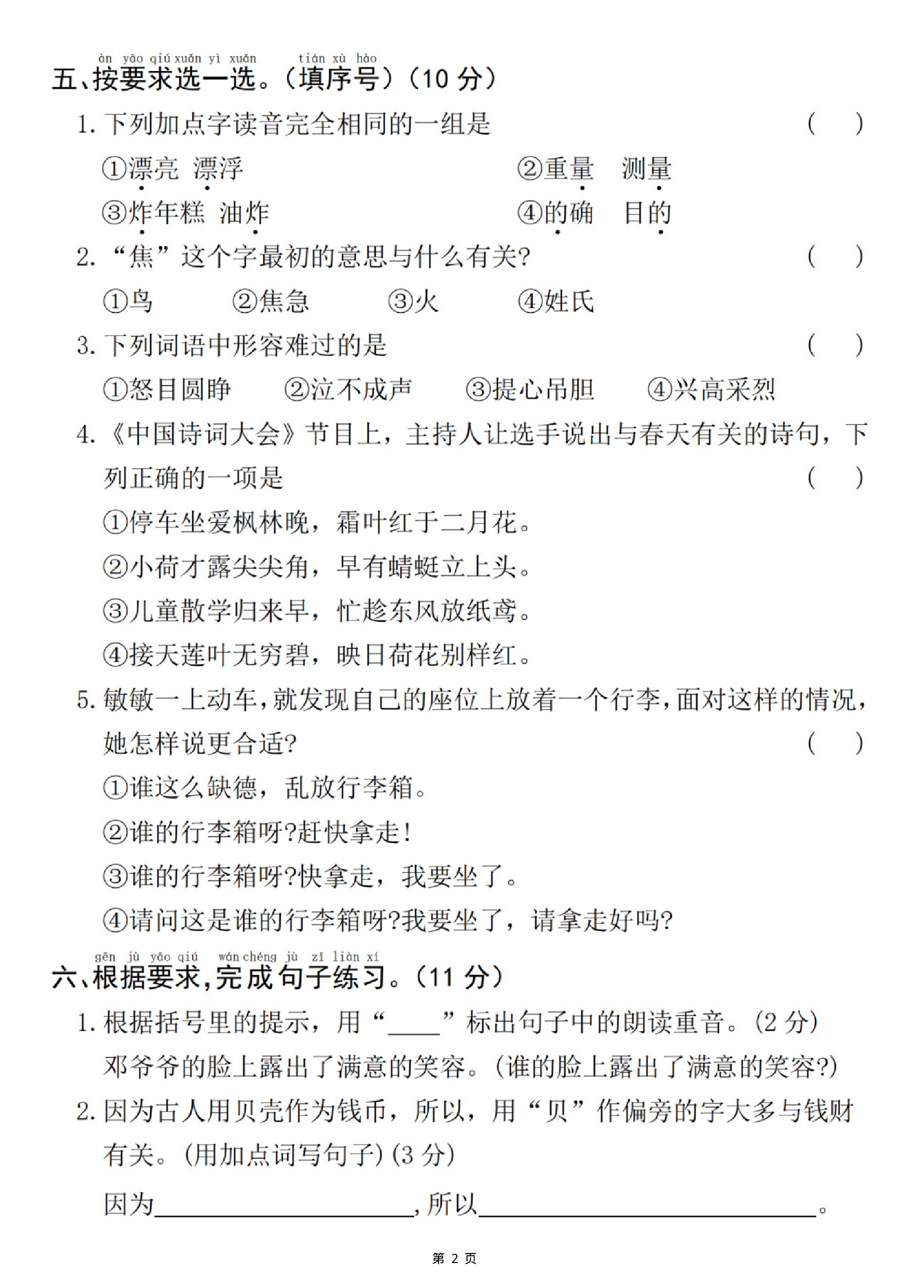 小学 25新一下语文期中拔尖检测卷-野火烧不尽(含答案5页)
