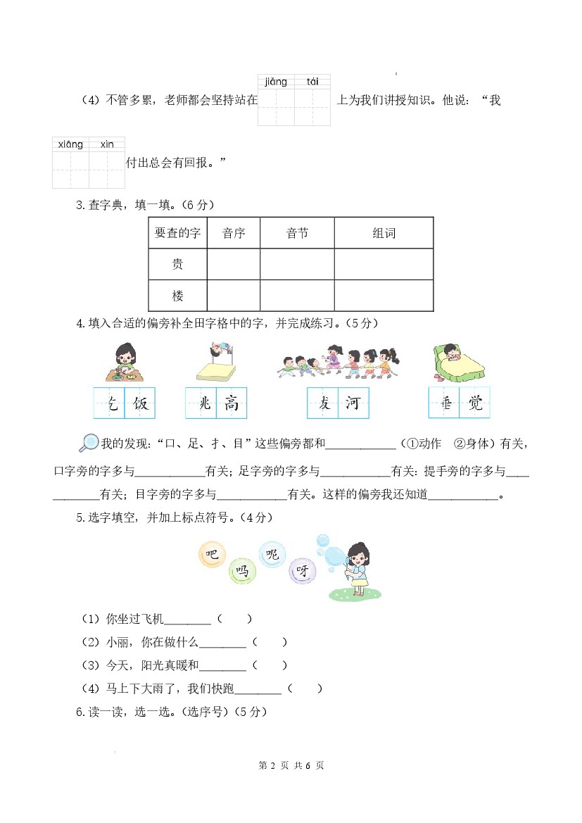 小学 25学年一下语文第三次月考阶段质量检测卷含答案8页