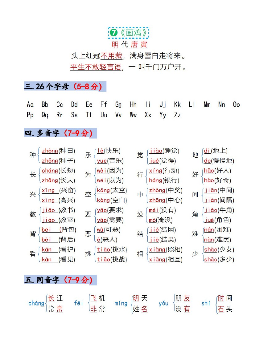 首页 > 全部 > 知识要点 > 一(下)语文全册重点知识总结