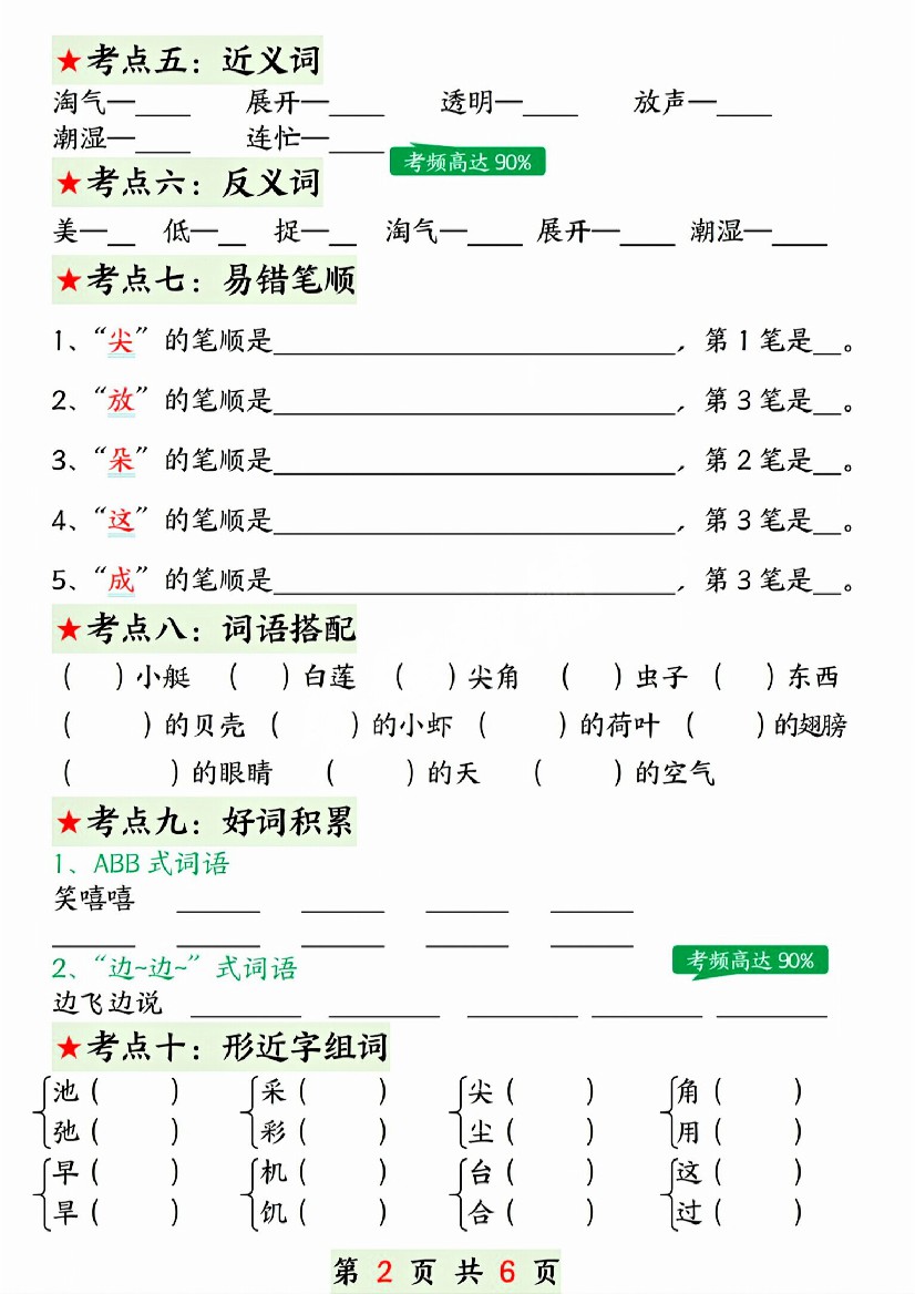一年级(下)语文第六单元考点总结