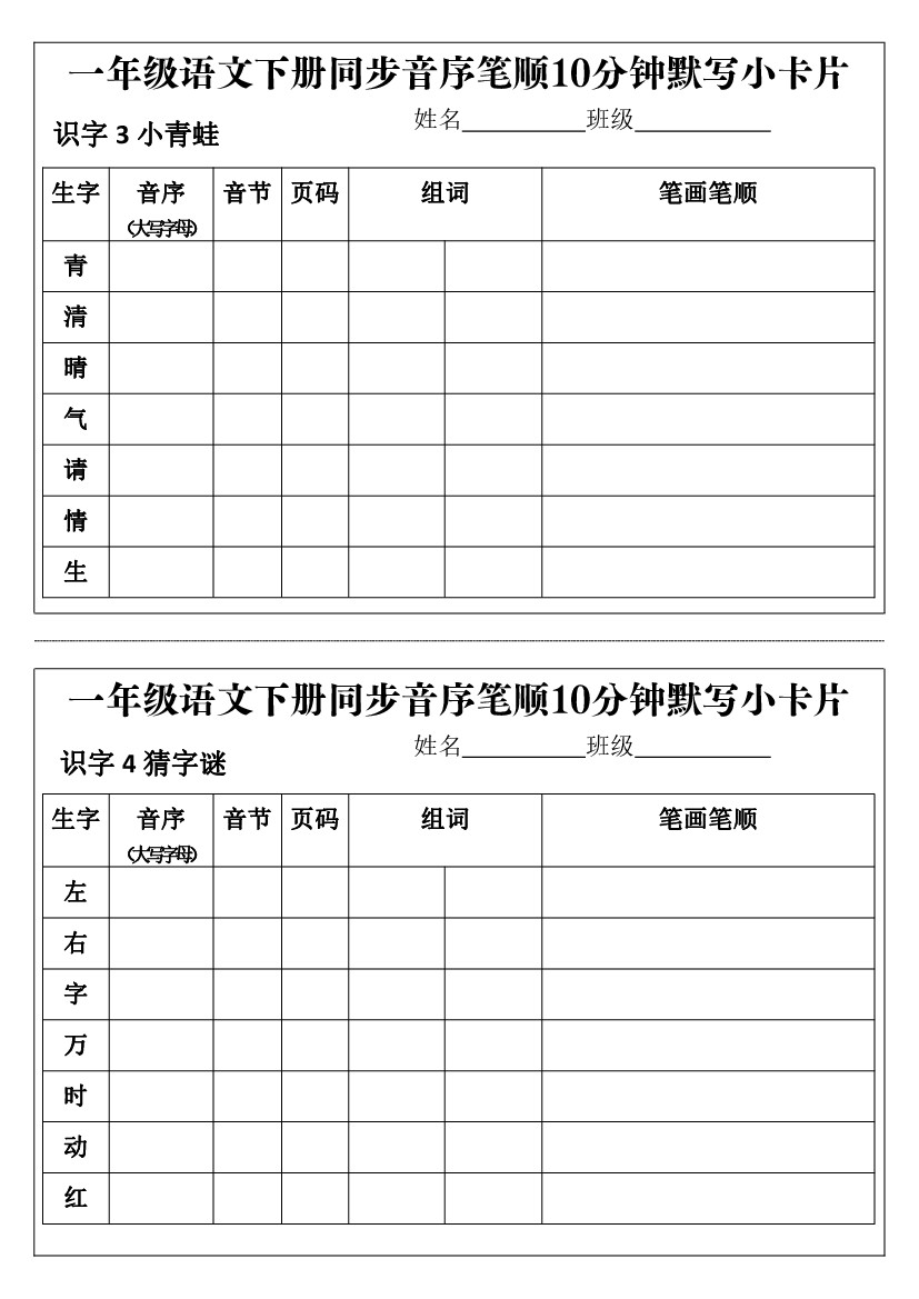 小学 【音序】一下语文同步音序笔顺10分钟默写小卡片(查字法30卡片15页)