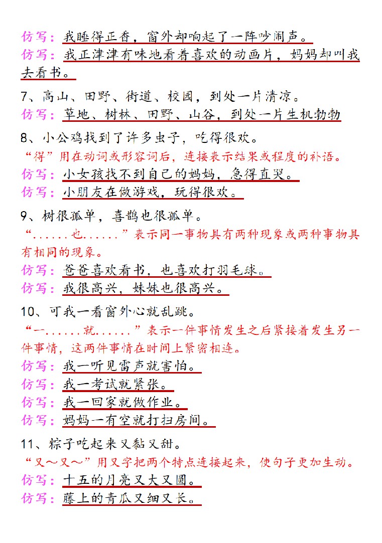 小学 【仿写】一下语文课内重点句式仿写