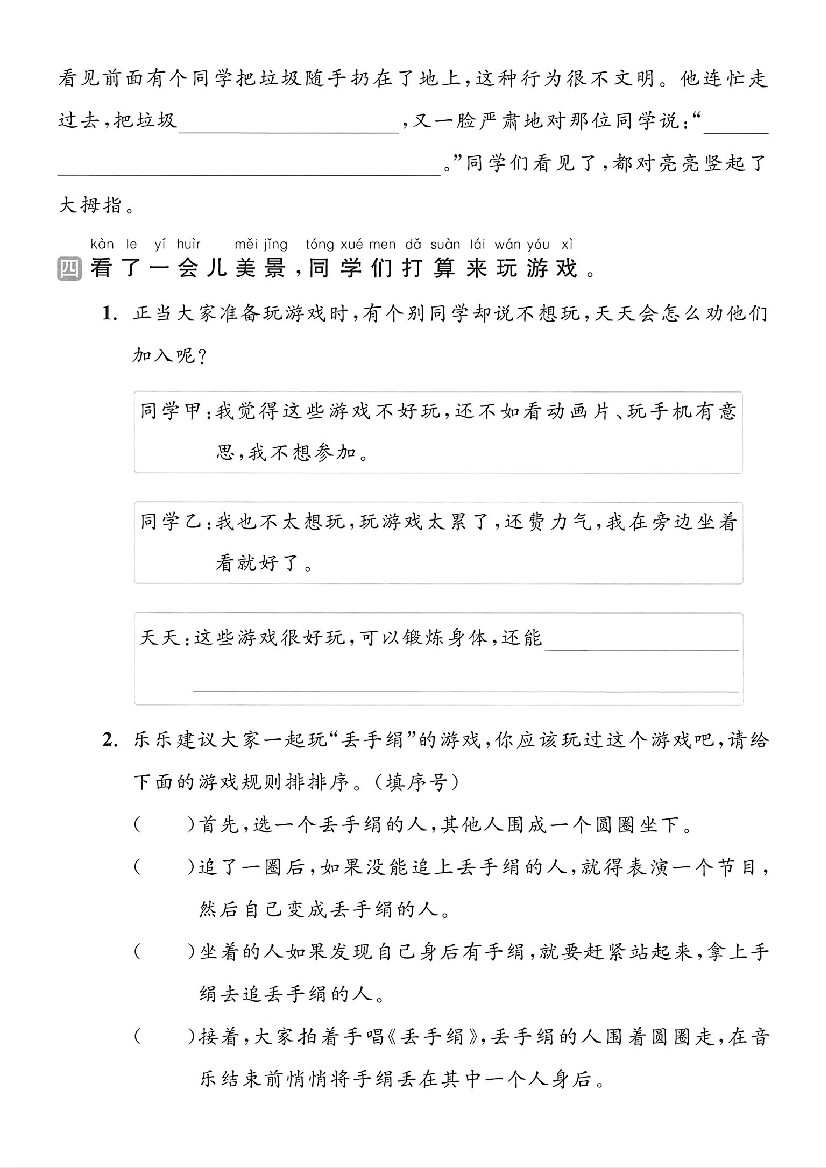 首页 > 全部 > 专项练习 > 一年级(下)语文期末《口语交际与写作》专项练习卷 (1)