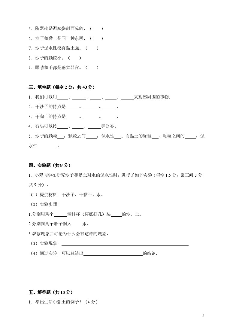 首页 > 全部 > 单元测试 > 一年级下册科学单元测试卷-第一单元石头与泥土苏教版(含答案)